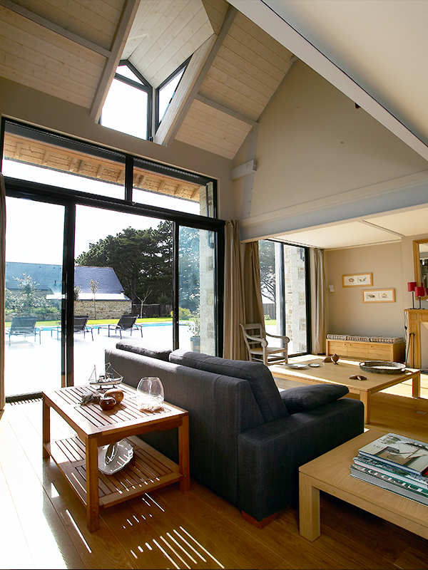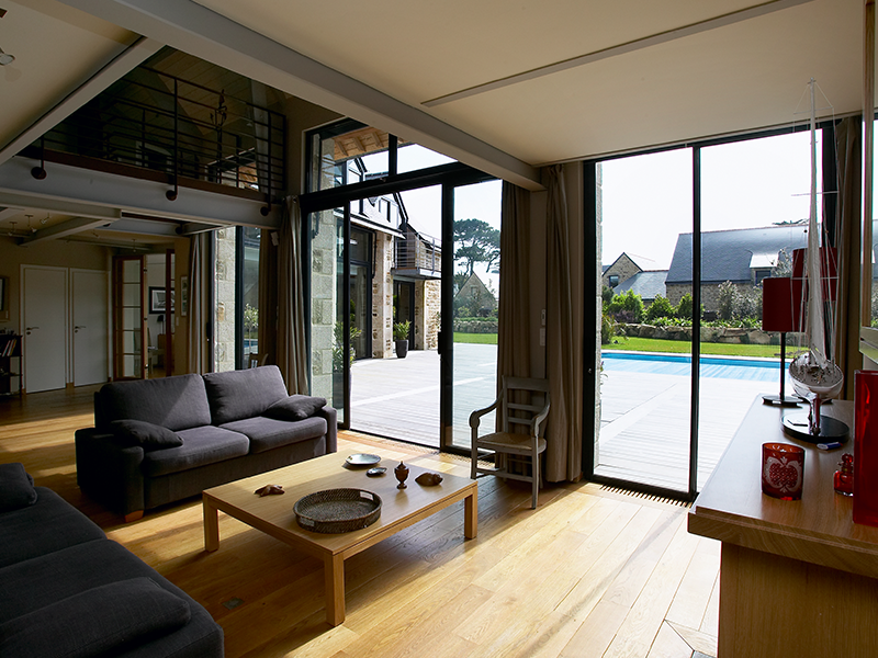 • Salon lumineux avec porte-fenêtres à Nantes (44) - Menuiserie du Héron - Maître Artisan Spécialiste Rénovation